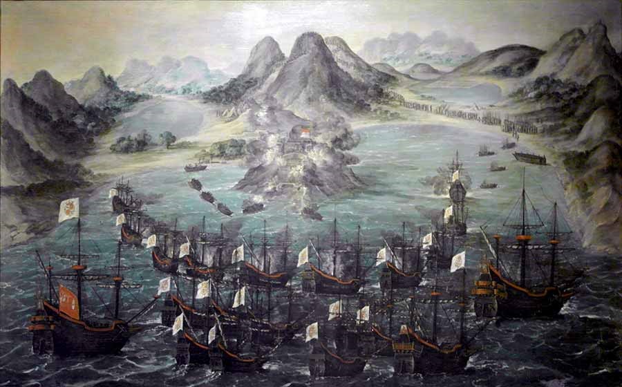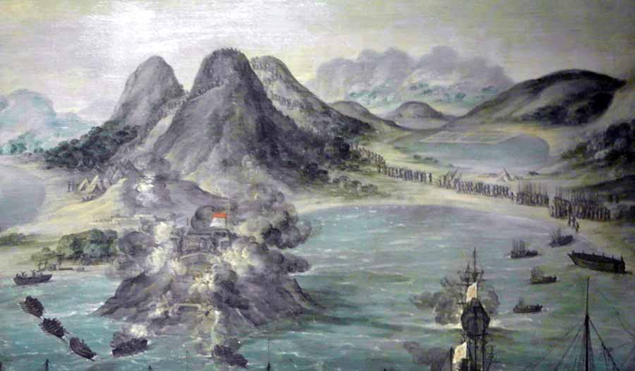 Al mando de la fortaleza holandesa se encontraba Jan Claeszoon van Campen, a quien hicieron entrega de la carta del jefe de la expedición española. Comunicado al general que no tocaba otra que combatir, este ordenó que las naos se desviaran fuera del tiro de cañón de la fortaleza y que los galeones, con él a bordo, fueran derechos a atacar. Se rompió así el fuego por ambas partes, causando los tiros del castillo siete bajas a los españoles.