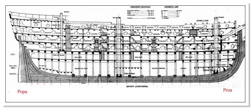 Único navío del mundo con cuatro puentes y 140 cañones. Era llamado “El Escorial de los mares”.