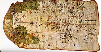 Juan de la Cosa acompañó a Colón en los dos primeros viajes, confeccionando su primer plano en 1500.