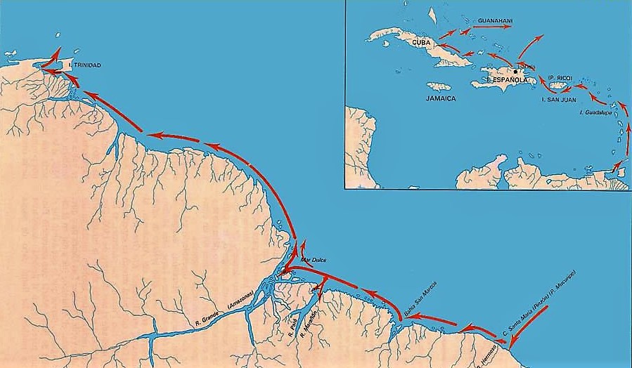 Exploró, asimismo, la desembocadura del Orinoco al que llamó río Dulce y prosiguió hacia el norte navegando por el archipiélago de las Lucayas. El interés del viaje es estrictamente geográfico: descubriendo Brasil y el Amazonas, así como navegar unas 400 leguas al sur de Paria.
