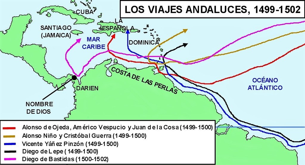 Rodrigo de Bastidas realizó uno de los primeros viajes después de los de Colón, saliendo en junio de 1500 desde Cádiz en las carabelas San Antón y Santa María de Gracia. Con él iba, como marino experto, Juan de la Cosa, y también Núñez de Balboa, que entonces pasó a las Indias.