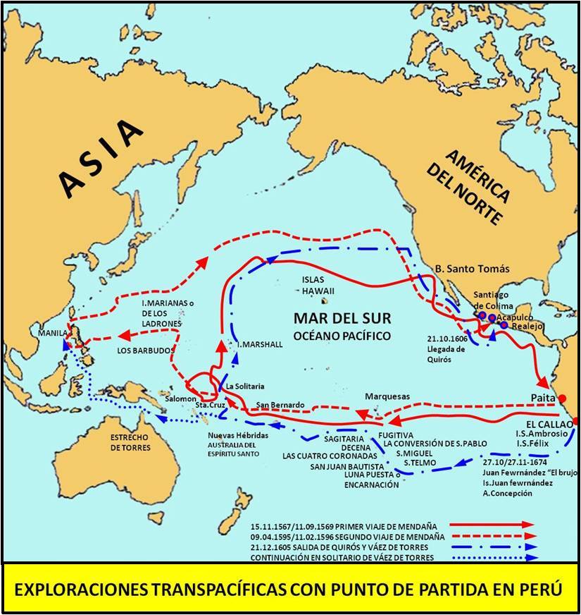 En 1603 Pedro Fernández de Queirós partió de Perú con la intención de encontrar la Terra Australis Ignota y conquistarla para España. La expedición con las tres naves Santos Pedro y Pablo, San Pedro y Los Tres Reyes, partió del Callao el 21 de diciembre de 1605 con 300 marineros y soldados.
