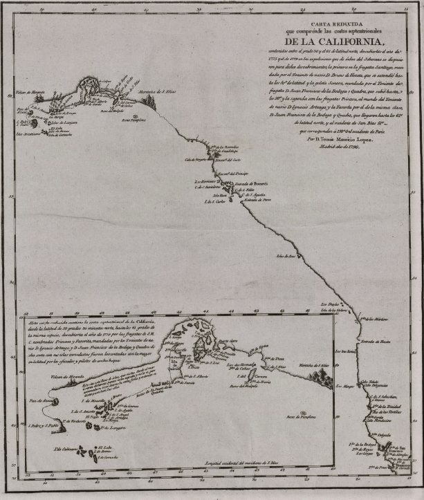 Aunque los españoles eramos normalmente reservados acerca de los viajes de exploración y los descubrimientos realizados, el viaje de 1779 de Arteaga y Bodega y Quadra se dio a conocer ampliamente. El conde de La Perouse obtuvo una copia de su mapa, que fue publicado en 1798.