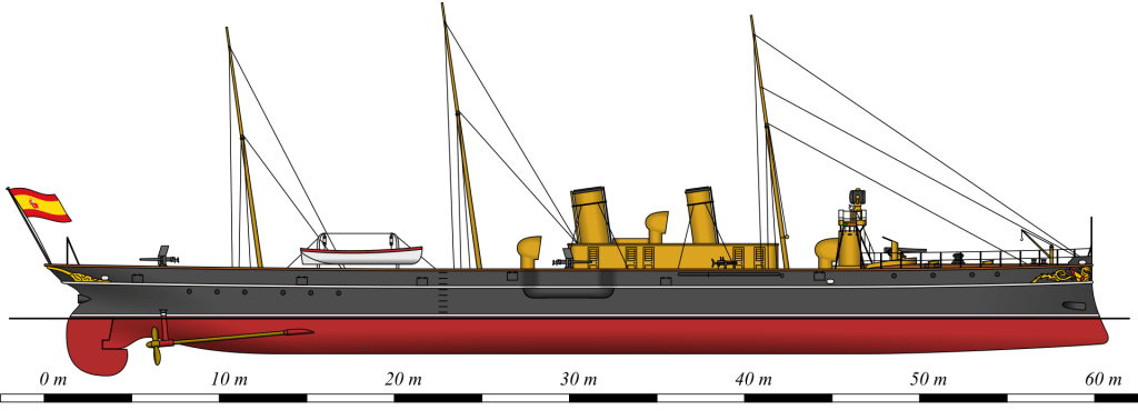 1887. Las pruebas de mar se hicieron en Clydebank, y en ellas el buque alcanzó una velocidad de 22,5 nudos con una potencia de máquina de 3764 caballos. En el viaje a España hizo una media de 18 nudos, y alcanzando más de 23 en algunas ocasiones.
