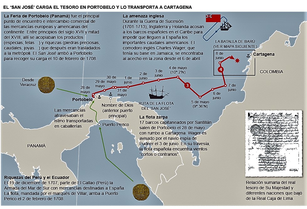 Tras las Ferias de Portobelo, el 28 de mayo de 1.708, el general José Fernández de Santillán, conde de Casa Alegre zarpó con la flota de 20 naves hacia Cartagena de Indias para su mantenimiento antes de su partida hacia Europa.