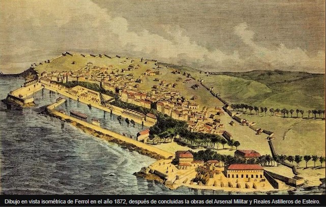 Es en la década de 1740 a 1750 cuando se comienza a planear y ejecutar el gran complejo que suponen los nuevos astilleros y el Arsenal. El nombramiento de D. Zenón de Somodevilla y Bengoechea, Marqués de la Ensenada, como Ministro de Marina, en 1743, supone el impulso definitivo y se construyen las 12 gradas del Real Astillero de Esteiro, se promulga una legislación de montes, acorde con las necesidades de madera previsibles para la construcción naval.
