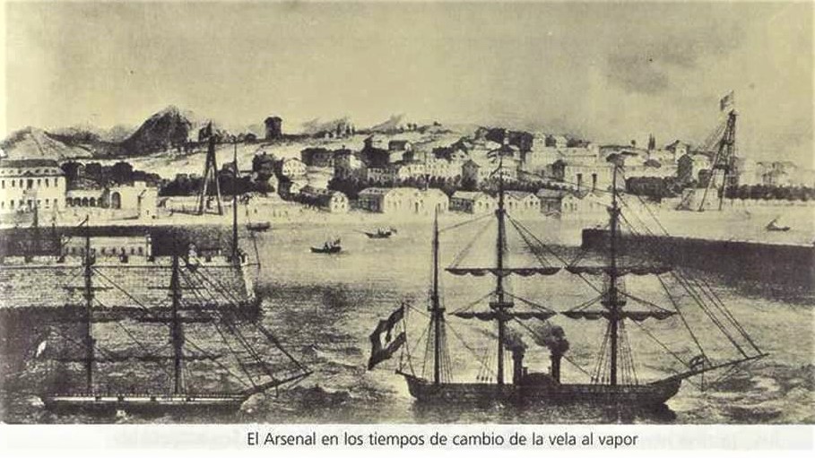 El reinado de Isabel II supone una brillante y segunda época para los Arsenales. La revolución industrial, con la generalización del uso del vapor en la maquinaria naval, incide notablemente. Se crea en 1850 la Escuela de Maquinistas y la de Ingenieros Navales, y se construye el taller de máquinas de vapor, ya que la protagonista de este siglo será la fragata a hélice.