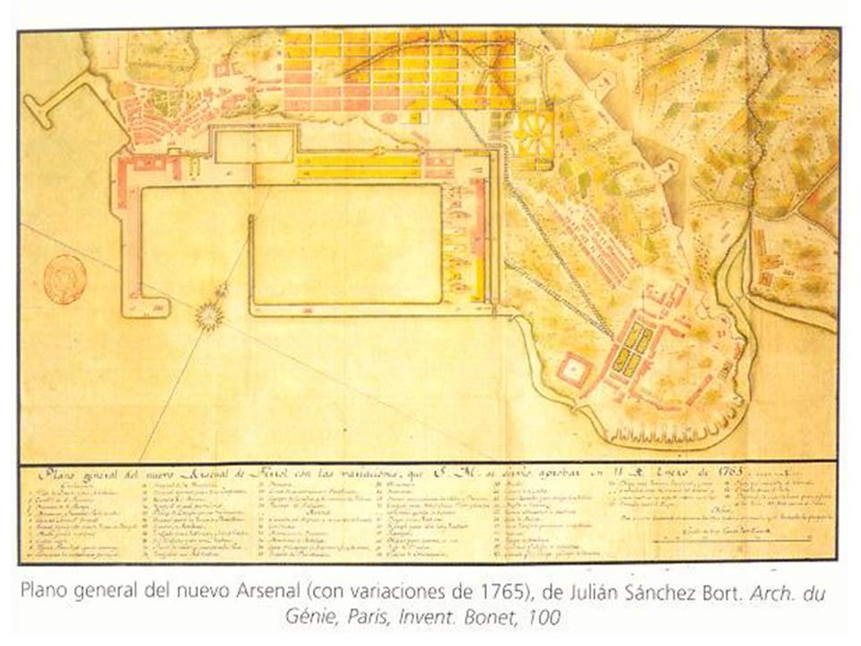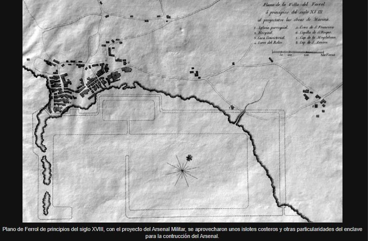 1761. Reinando Carlos III se configuran los proyectos del nuevo poblado militar de la Magdalena (actual centro de Ferrol) y se diseña el Arsenal de los Diques. Queda así planteado, totalmente, el gran proyecto del Marqués de la Ensenada y de Jorge Juan, que por estas fechas abandonaba Ferrol, definitivamente.