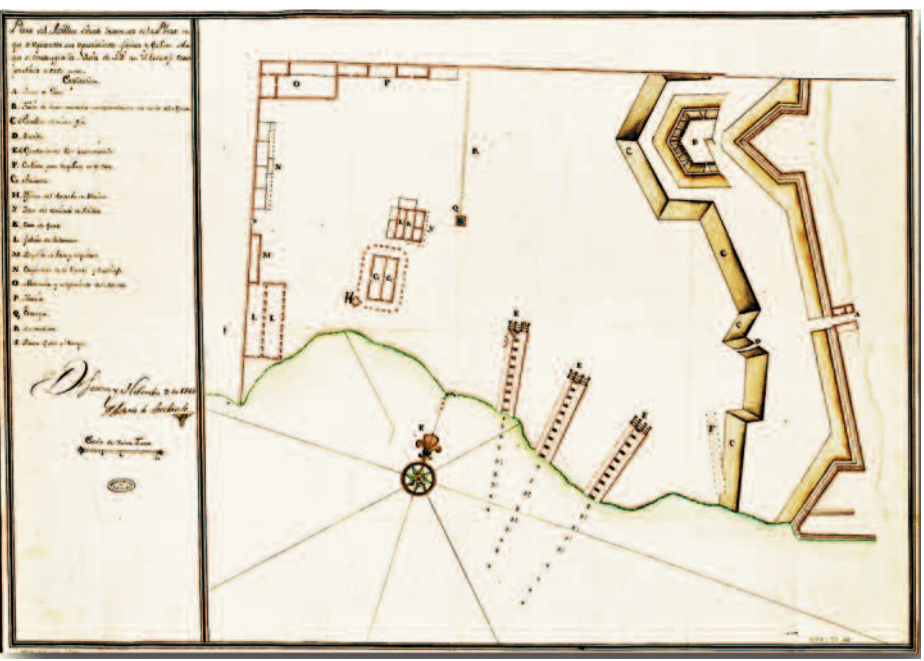 En el lado sur del Arsenal, unos quinientos metros de longitud del litoral formaban una pequeña ensenada de casi una hectárea de superficie, con fondos bajos, lo que permitía que los barcos construidos fueran botados suavemente. Durante la primera mitad del siglo XVIII, fue el astille ro más importante del Imperio español.