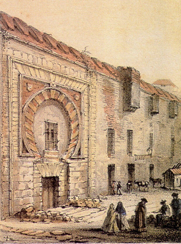 La puerta de la época nazarí (siglo XIV). La puerta es de planta rectangular con dos pórticos paralelos en los que destacan sus aberturas principales compuestas sobre la base de arcos de herradura unidos por una bóveda de cañón: También es digna de mención la totalidad de la cornisa, compuesta por grabados a base de pequeños arcos de herradura encadenados, y las ventanas de herradura con cerramientos de madera.