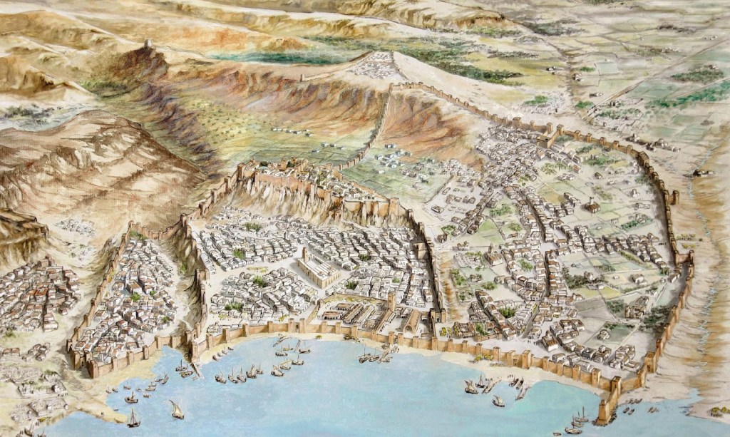 Según el arzobispo de Nebio, Agustín Justiniani, estaba junto al mar y era capaz para gran número de navíos; afirma que en su tiempo aún se veían sus vestigios subsistentes hasta 1868.