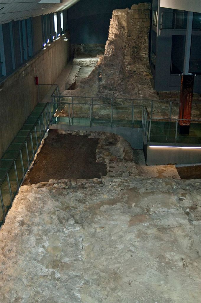Aún existían restos de una gran nave de 100 metros de largo, 15 de ancho y 30 de altura, construida con gruesos muros de mampostería, arcos de sillería y bóveda de ladrillo cocido.