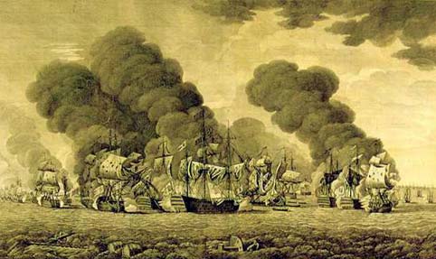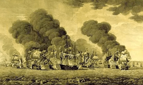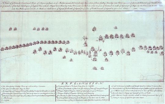 Los 30 navíos británicos al mando de Matthews navegaban al este de la flota franco-española, maniobrando hacia el suroeste para aproximarse a la línea de batalla aliada.