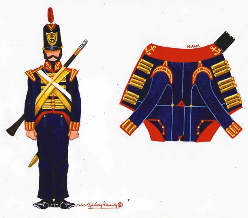 Después de Trafalgar, las fuerzas de Infantería de Marina quedaron organizadas según el esquema adjunto.