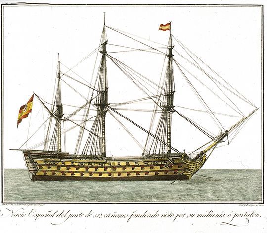 Este navío tenía tres puentes y 112 cañones, fue construido en los astilleros de La Habana en 1.794.