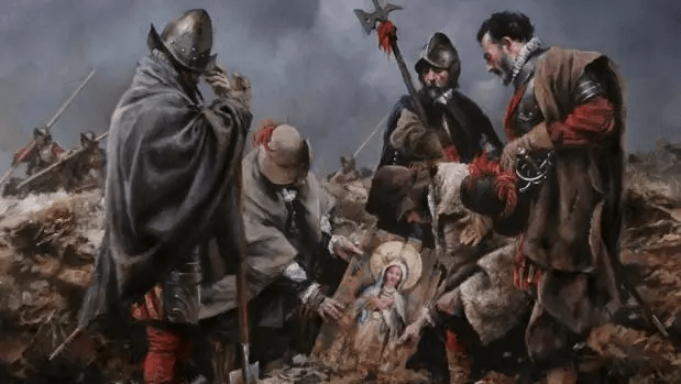 El día 7, un soldado del Tercio cavando una trinchera tropezó con un objeto de madera allí enterrado. Era una tabla flamenca con la imagen de la Virgen María. Anunciado el hallazgo, colocaron la imagen en un improvisado altar y el Maestre Bobadilla, considerando el hecho como señal de la protección divina, instó a sus soldados a luchar encomendándose a la Virgen Inmaculada.