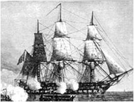 Comandante el capitán de navío Henry William Bayntun. Buena parte de su jarcia cortada. 8 disparos a la línea de agua. Un cañón de a 32 y dos de a 18 destruidos. Tuvo 5 muertos y 25 heridos.