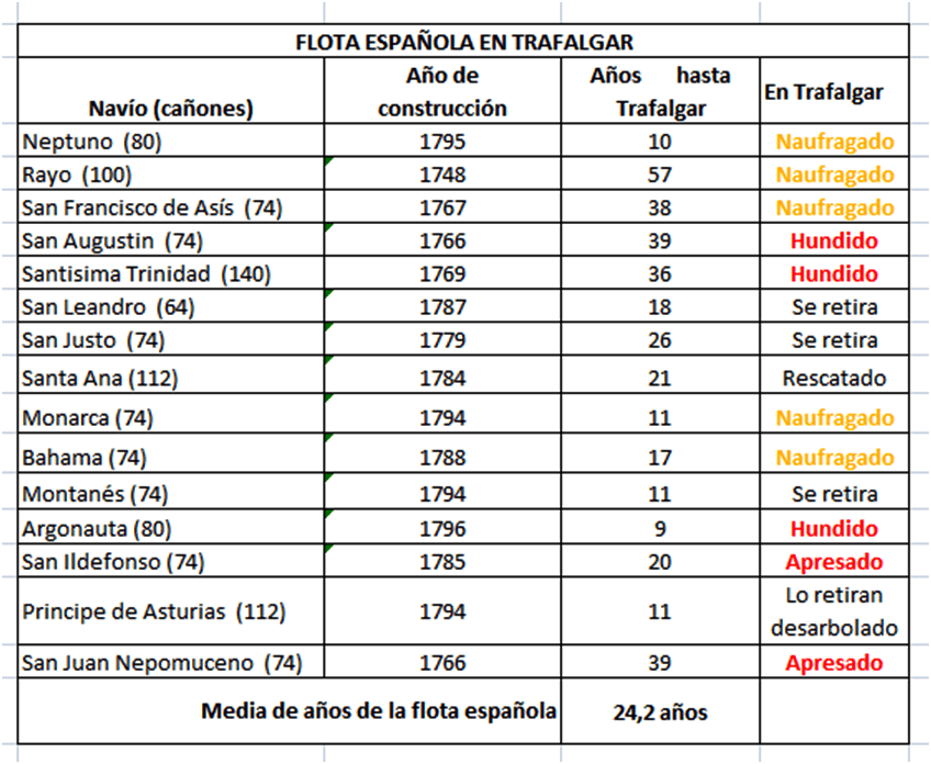 COMPOSICIÓN DE LAS FLOTAS EN TRAFALGAR: