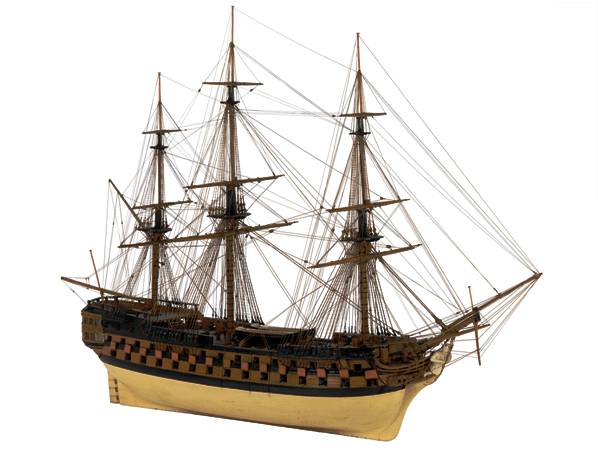 Buque insignia del vicealmirante C. Collingwood. El Royal Sovereign fue el primer barco de la flota en entrar en acción el 21 de octubre de 1805 en Trafalgar; cortó la línea del enemigo y él solo entabló combate con el navío español de tres puentes Santa Ana.