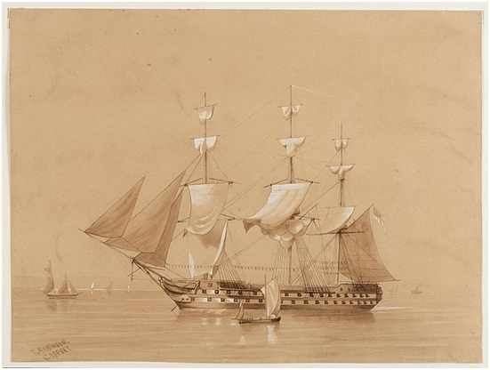 Navío de dos puentes y 64 cañones, construido en Astilleros Sheerness. Desplazaba 1.408 T. Clase Canada. Tenía una eslora 48,8 m, manga de 13,6 m y calado de 5,8 m. Con 484 hombres.