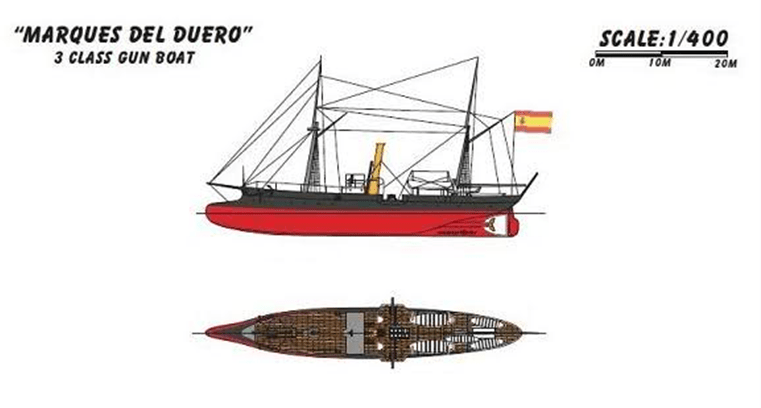 - El cañonero Marqués del Duero de 500 T y 1 cañón Hontoria de 120 mm.