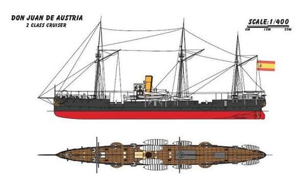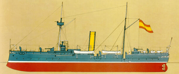 - El crucero de primera clase Reina Cristina de 3.520 T, con 6 cañones Hontoria de 160 mm y 2 tubos lanzatorpedos.
