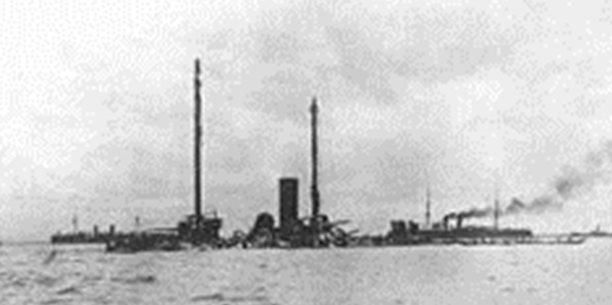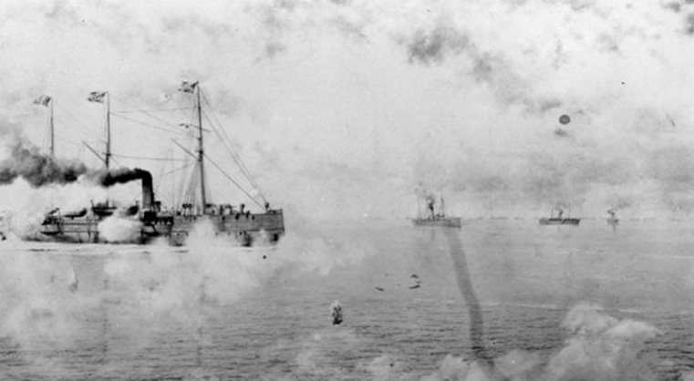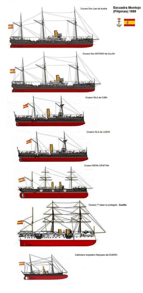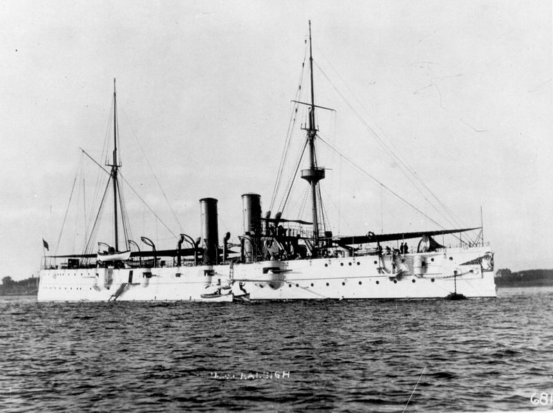 - Crucero protegido USS Raleigh (C-8) de 3.640 T, con blindaje de 64 mm, 1 cañón de 152 mm, 10 de 127 mm, 8 de 6 libras, 4 de 1 libra y 4 tubos lanzatorpedos de 457 mm.