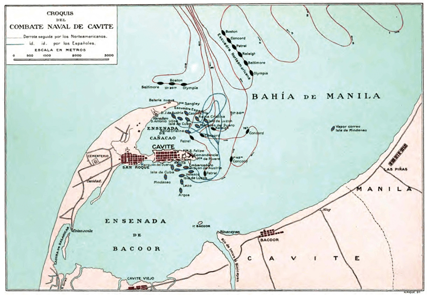 Al declararse la guerra, la escuadra norteamerica del almirante de Dewey llegó la noche del 30 de abril a la bahía de Subic.
