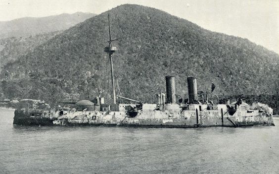 - El crucero acorazado Cristóbal Colón de 6.840 T, con 2 cañones de 254 mm (fue al combate sin estar montados), 10 cañones de 152 mm, 6 de 120 mm, 10 de 57 mm y 10 de 37 mm y cuatro tubos lanzatorpedos.