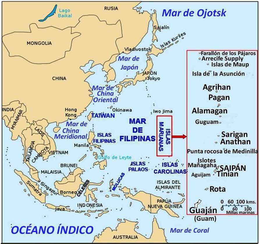El Gobernador Político-Militar con sede en Guaján, cuenta para la defensa de la isla con cincuenta y cuatro soldados de infantería y artillería de Marina al mando de dos alféreces, algunos lugareños armados y un cañón inservible.