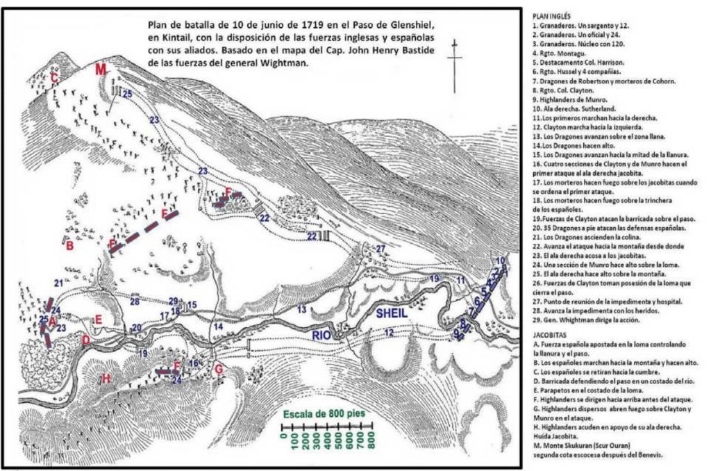 Tras un mes de movimientos en la zona, los españoles tuvieron la triste noticia a primeros de junio, de que los refuerzos de Ormonde nunca llegarían, A pesar de ello, decidieron llevar a cabo una última gran acción contra los ingleses, recabando el apoyo de algunos clanes escoceses hasta llegar a rondar los 1.000 efectivos. Entre los que se sumaron estaban los hombres del héroe nacional escocés Robert Roy McGregor, más conocido como Rob Roy.