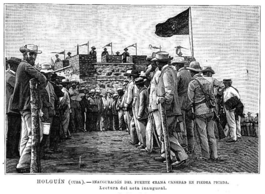 A la altura de un lugar conocido como “Piedra-Picada” toparon los mambises con la patrulla de vigilancia que, al verse sorprendida por tanta superioridad se batió en retirada hacia el puesto de guardia, ubicado en el puente sobre el arroyo de Aguas Claras, en el puesto de guardia estaban José Rama Varela y Antonio Cancela Rodríguez.