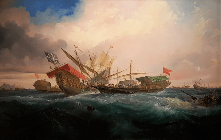 El sábado 8 de abril de 1340 la escuadra castellana maniobraba en aguas cercanas a Algeciras buscando la mejor posición y viento favorable para la batalla, pero no parece que el Almirante contara con la fidelidad de todos sus cómitres, porque fueron muchos los barcos que no siguieron al estandarte cuando la galera insignia se lanzó contra la flota enemiga acompañado tan sólo por unas pocas galeras castellanas fieles que no pudieron impedir la masacre que se produjo ese día.