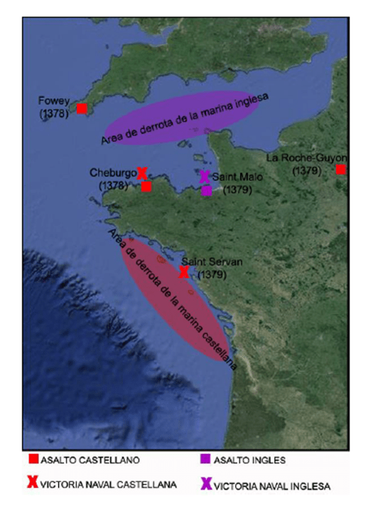 Los barcos franceses y castellanos eran dueños del Canal, y navegaban libremente por las costas inglesas. Aún sin acabar ese año una escuadra castellana derrotó frente a Normandía a la flota inglesa que mandaba el conde de Devonshire.