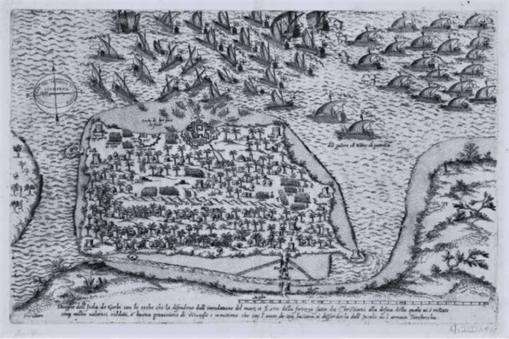 Mientras los cristianos construían la fortaleza pensando que los turcos podrían llegar en enero de 1561, una flota turca compuesta por alrededor de 86 galeras y galeotes, a cuyo mando estaba el almirante Pialí Bajá, había zarpado ya de Constantinopla con destino a las costas tunecinas.