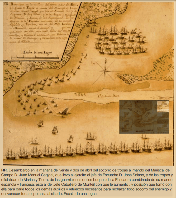 A Gálvez también se unieron cuatro fragatas francesas y 725 soldados franceses, al mando del Almirante Monteil. De modo que antes del 22 de abril, tenía bajo su mando a 7.800 hombres. Junto con varios buques pequeños, se internó en el interior de la bahía para demostrar la navegabilidad y el día 21 atacan 7 navíos de línea, 9 fragatas y bergantines, balandros y buques menores pegados a Punta Sigüenza haciendo frente al fuego de las baterías británicas.