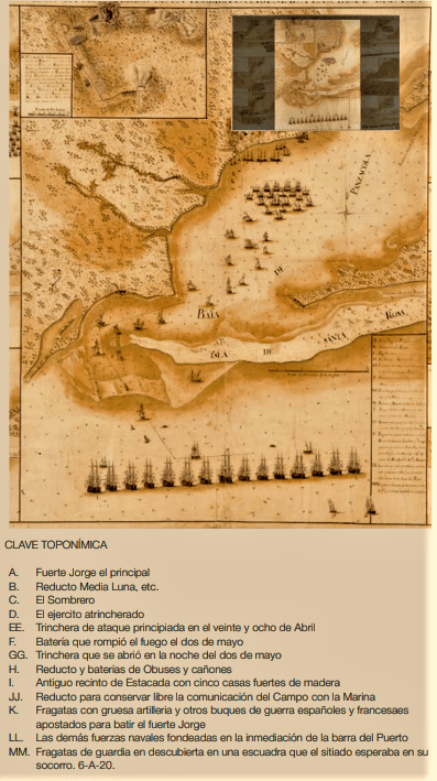 A finales de marzo se empieza el desembarco y el dia 2 de abril las fuerzas inglesas se repliegan a la fortaleza George.