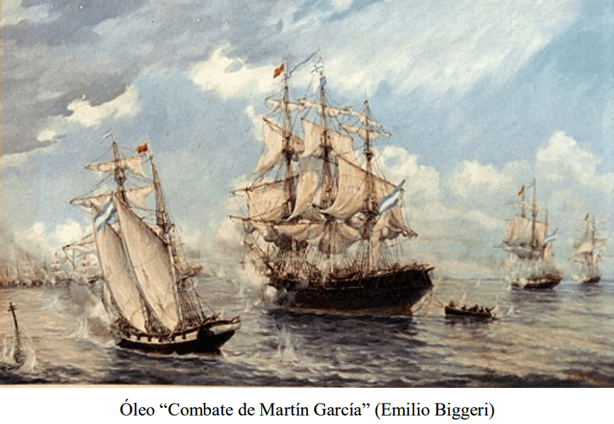 El día 8, Brown, que se encontraba frente a Colonia con la Hércules, la Fortuna, el San Luis y la Carmen, divisó tres bergantines españoles en dirección noroeste. Los siguió hasta el anochecer, momento en que habiendo verificado que entraban al canal de Martín García y se dirigían a la isla, torció rumbo a Buenos Aires en busca de refuerzos.