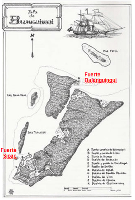 Una vez superado el primer propósito de la operación, los españoles decidieron entonces adentrarse en la isla a través del canal junto a los botes, pero no había suficiente profundidad y tuvieron que quedar atrás. Clavería dio la orden de apoderarse el fuerte llamado Sipac. Durante la fase de reconocimiento descubrió que las fuerzas navales no podían aproximarse para rodear la fortificación, de modo que mandó desplegar sus dos piezas de artillería de montaña del calibre 12 en el istmo. Las tropas permanecieron en sus posiciones hasta el amanecer del día 19, momento en que fue dada la señal de asalto, al oír los acordes comenzó el fuego de la artillería, que aunque fue nutrido y preciso no doblegó la resistencia de los piratas que resistían en los muros blandiendo sus armas y desafiando a los soldados españoles. Viendo la situación, el Capitán General Narciso Clavería Zaldúa, acompañado por su Estado Mayor y una escolta de infantes de marina, arengó a las tropas, exhortándoles a cumplir con su deber como se espera de los soldados españoles Una hora más tarde, las columnas de ataque, que contaba con 50 escalas, se lanzó al asalto; se toparon con una densa descarga de fusilería por parte de los defensores piratas, pero lograron salvar los obstáculos de madera y adentrarse en el fuerte.