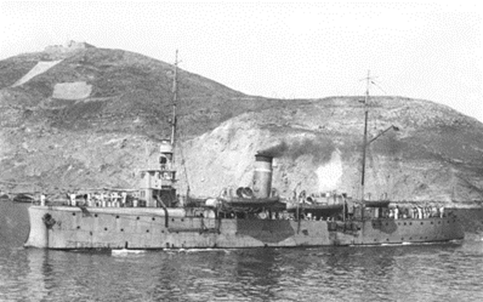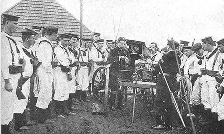Al atardecer desembarcó un pelotón de marineros (un contramaestre y 14 hombres) con dos ametralladoras, al mando del alférez de navío Pedro Pérez de Guzmán y Urzáiz.