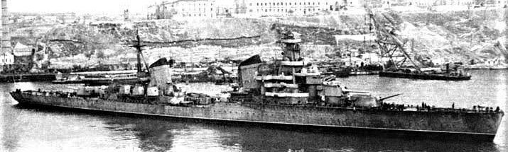 Tras infructuosos intentos, el “chispa” le dijo al Comandante que no respondían a su llamada. En ese momento, y por el tubo acústico, el serviola informó que se trataban de cinco buques rusos, pues había visto las banderas rojas, con la hoz y el martillo amarillos. El Comandante volvió a echar un vistazo con los prismáticos, y efectivamente, comprobó que el que parecía ser el buque insignia, era un crucero pesado ruso, posiblemente de la clase Kalinin.