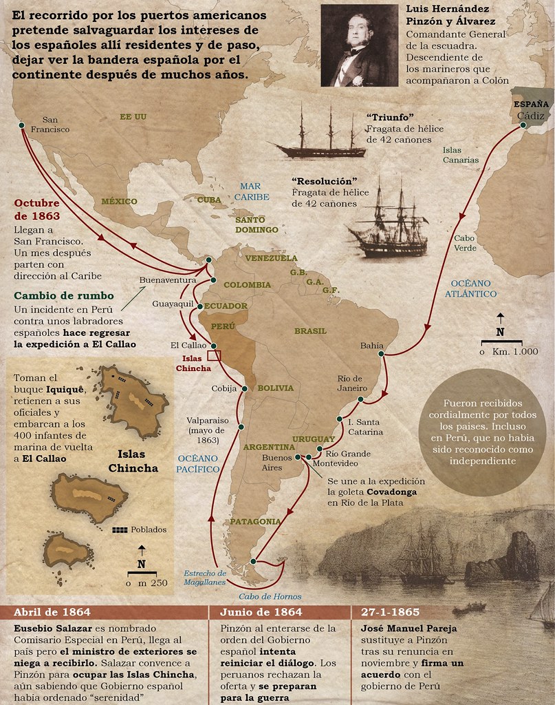 El detonador fue una reyerta entre civiles peruanos y vascongados que no fue resuelta satisfactoriamente y escaló a nivel internacional. Cuando el gobierno peruano de Pezet se negó a aceptar las condiciones españolas para la solución del impasse, las islas Chincha, fueron ocupadas el 14 de abril de 1864 por los marinos españoles.