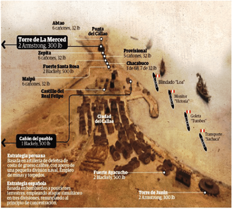El 27 de abril la flota española al mando de Méndez Núñez se presentó delante del puerto de El Callao y anunció su propósito de batir los fuertes cuatro días después, dando plazo para que la población civil se pusiera a cubierto del bombardeo, lo que aprovecharon los fuertes para prepararse.