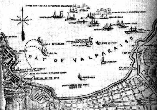Estaban surtas en la bahía las escuadras inglesa y norteamericana. La primera al mando del Almirante Joseph Denman y la segunda al mando del Comodoro John Rodgers. El Encargado de Negocios de Inglaterra Mr. Taylor Thomson no autorizó la intervención de la escuadra inglesa para impedir el bombardeo, pues ello significaba un combate entre ambas fuerzas navales. El Comodoro Rodgers al conocer el pronunciamiento de los ingleses, no se atrevió a intervenir. Poco antes del inicio del bombardeo a Valparaíso, ambas escuadras extranjeras zarparon, dejando abandonada a su suerte a la ciudad.
