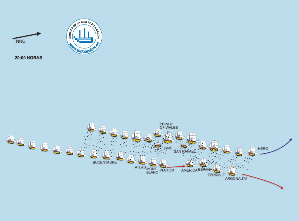 Tras muchas horas de maniobras con rumbo sur-oeste, la acción se inició a las 17:15 cuando el buque inglés HMS Hero, en vanguardia, se aproximó a la línea de batalla franco-española.