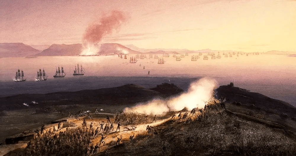 - El Brigadier Izquierdo, y después Pignatelli, terminada la incursión, se repliegan sobre alturas de Cabo Brun, ocupadas por lord Mulgrave.