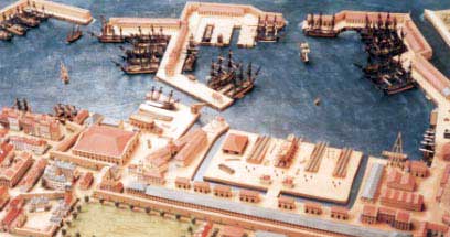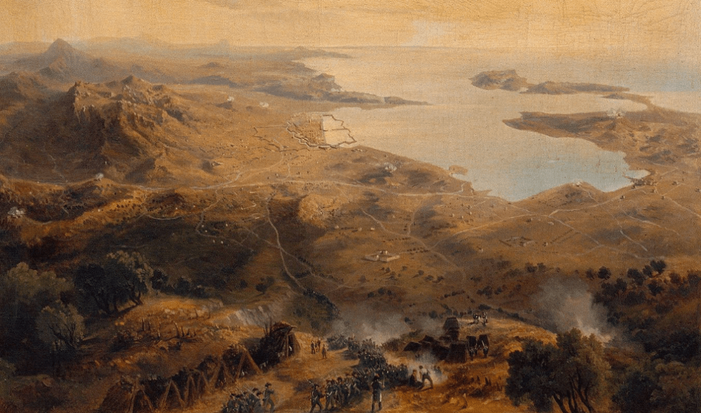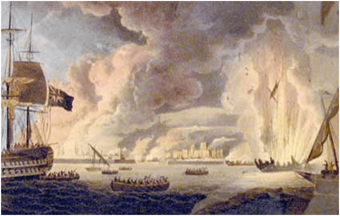 (24) Retirada de las tropas de la poterna cercana a Puerta de Italia y embarque junto al fuerte de La Malgue, dirigido por don Ignacio María de Alava.