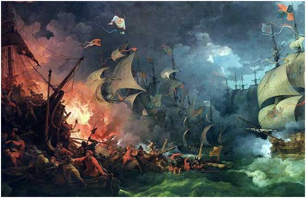 Howard situándose a barlovento, conservándose dueño de sus movimientos, atacando la retaguardia del enemigo, envolviendo sus alas…, tuvo su oportunidad en Gravelinas después de desorganizar la formación de la Armada con el ataque de brulotes de Calais. Acercándose entonces a tirar de cerca con sus cañones de largo alcance, pero siempre evitando el combate al abordaje.
