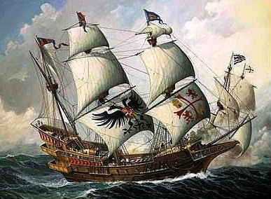 Galeón de cuatro palos, buque insignia del almirante Francis Drake.