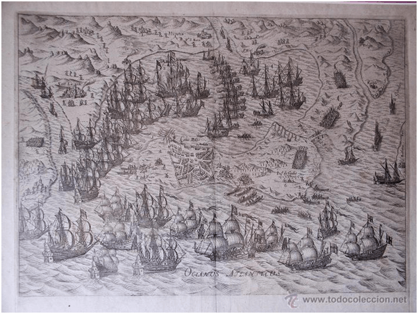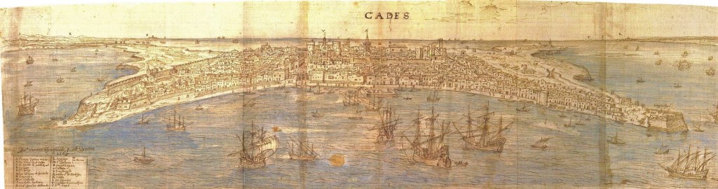 La ciudad de Cádiz, con aproximadamente 6.000 habitantes, era uno de los principales puertos españoles. El sábado 29 de junio de 1596 llegaron a Cádiz noticias procedentes de Lagos, en el Algarve portugués, en las que se avisaba de la presencia de una flota inglesa. En aquel momento había en la bahía de Cádiz unas 40 naves españolas de guerra, entre galeras y galeones, además de otras 16 naos de la flota de Indias, que prestas a zarpar a las Indias se encontraban desprovistas de armamento; estas, desde los primeros momentos, fueron a refugiarse a Puerto Real.